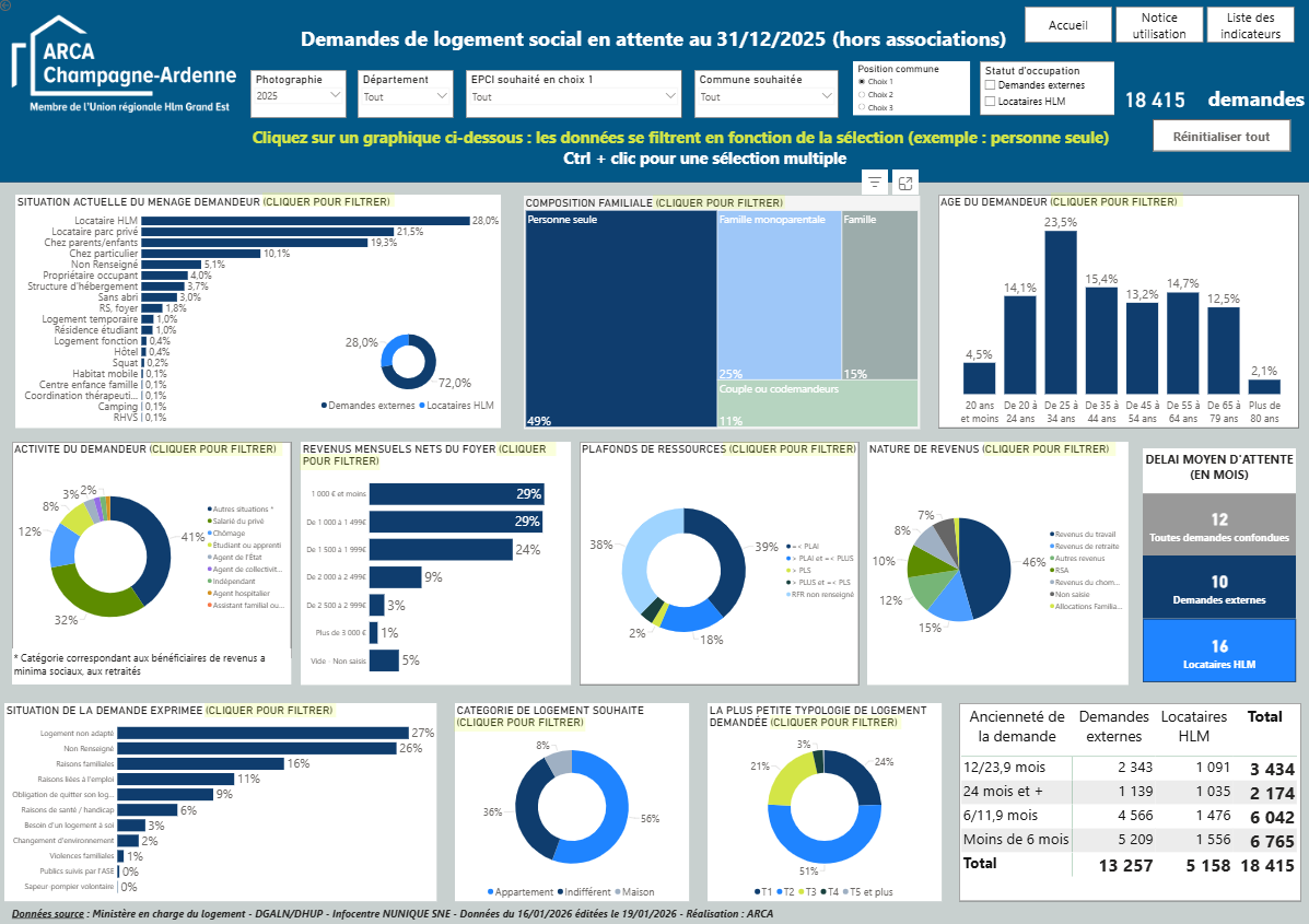 L’observatoire de la demande et des attributions de logement locatifs sociaux réalisé par l’ARCA s’est enrichi en 2025 avec de nouveaux indicateurs :